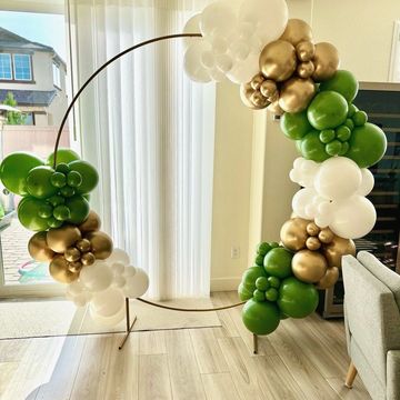 The organic balloon garland, fully customizable in colors to match your theme. Create a memorable photo opportunity and a beautiful focal point for any celebration. Ring Balloon garland 7 to 8ft from 1-2 colors, 2-3 Different Size Balloons. Additional charge for 3+ colors and specialty balloons.